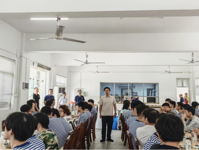 On the morning of July 27, a delegation including Gan Zhipin, Vice Dean of the Undergraduate Academy; Wang Chong, Vice Dean of the School of Naval Architecture, Ocean and Energy Power Engineering; Li Chunmei, Deputy Party Committee Secretary of the School; Yang Zhiyong, Lead Professor of Marine Engineering; and Xu Meng, Director of the Student Affairs Office, visited the Huangpi Mulan Water Training Base to warmly greet and express their appreciation to the teachers and students participating in the seafarer certification training program.