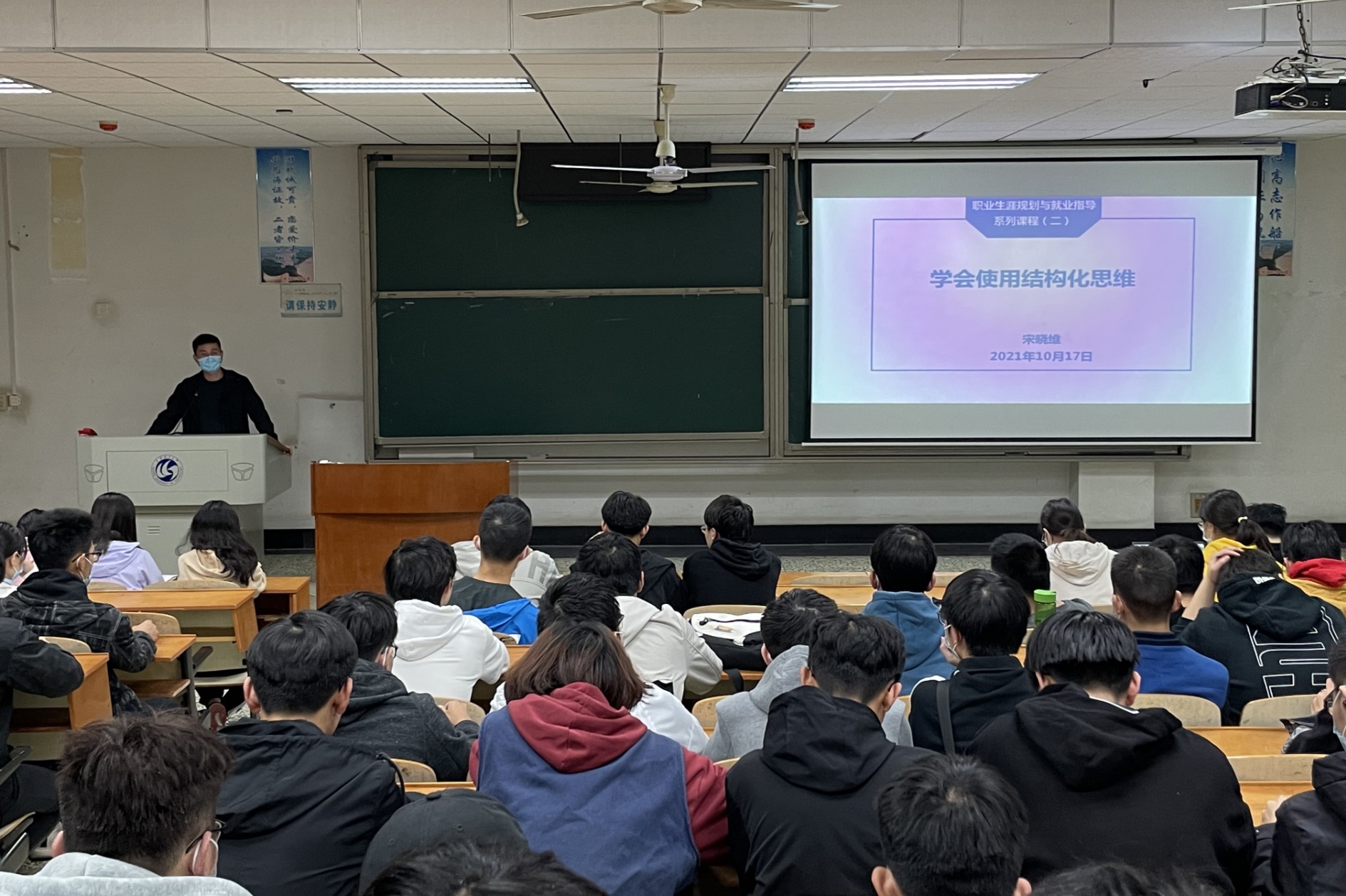 2019级能源与动力工程专业利用年级周课主阵地,在航海楼315教室开展职业生涯规划与就业指导第二讲——学会使用结构化思维。本次年级周课由辅导员宋晓维老师主讲,2019级能源与动力工程专业全体同学都参与了此次周课。