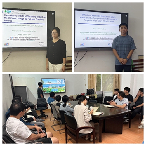 2024年10月13日下午,H动画专业2022级硕士研究生王妙珠、陈童华和2023级硕士研究生李靖宇在余区船舶工程系201会议室就参加第34届国际海洋与极地工程会议开展了出国参会经验交流会。会议由船舶工程系贺伟老师主持,李子如、周利兰和秦江涛三位老师,以及研究生30余人参加了会议。