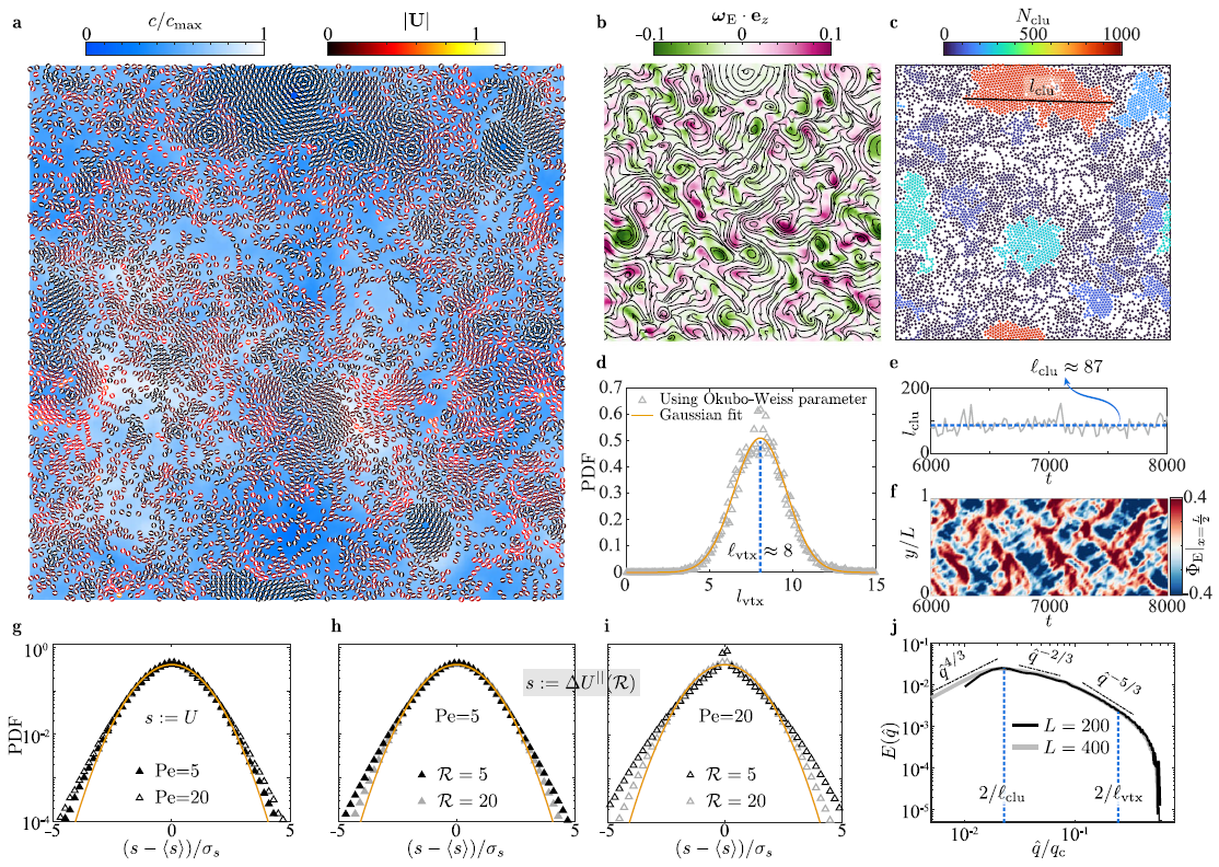 Figure 2. Vortex structures and flow patterns in active turbulence