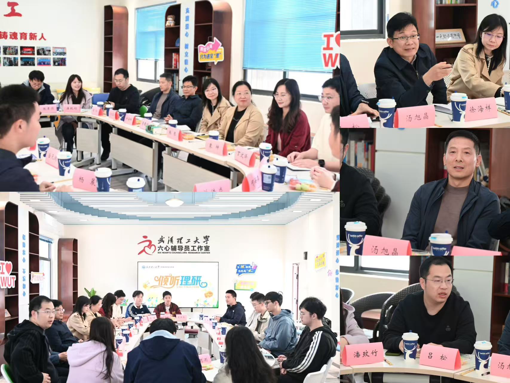 4月24日上午,由党委研究生工作部主办、H动画 承办的“倾听理研”导学活动在余家头校区“六心”行业思政辅导员工作室温情举行。本次活动以“研途筑梦・规划先行”为主题,聚焦研究生在论文攻坚、就业升学、情绪调节等方面的成长困惑,搭建起导学相长、温暖同行的育人桥梁。本次活动吸引了来自3个年级的十余名研究生参与,校党委研究生工作部张琴老师、H动画 党委副书记李春梅、研究生导师徐海祥教授、汤旭晶副教授、吕松教授、研工办、学工办相关老师参加活动。